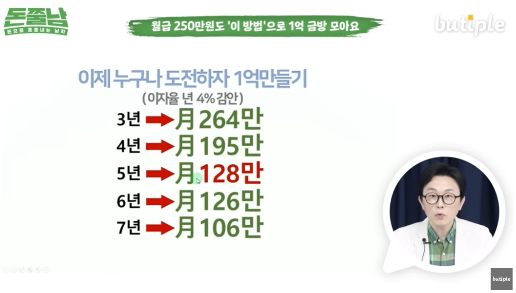- 유튜브 채널 '부티플': ["단돈 10만원 정도만 있어도 1억 모은다? 적은 돈으로 쉽고 빠르게 부자되는 법 공개합니다" 월급 250만원이어도 '이 방법'이면 1억 금방 모을 수 있어요]